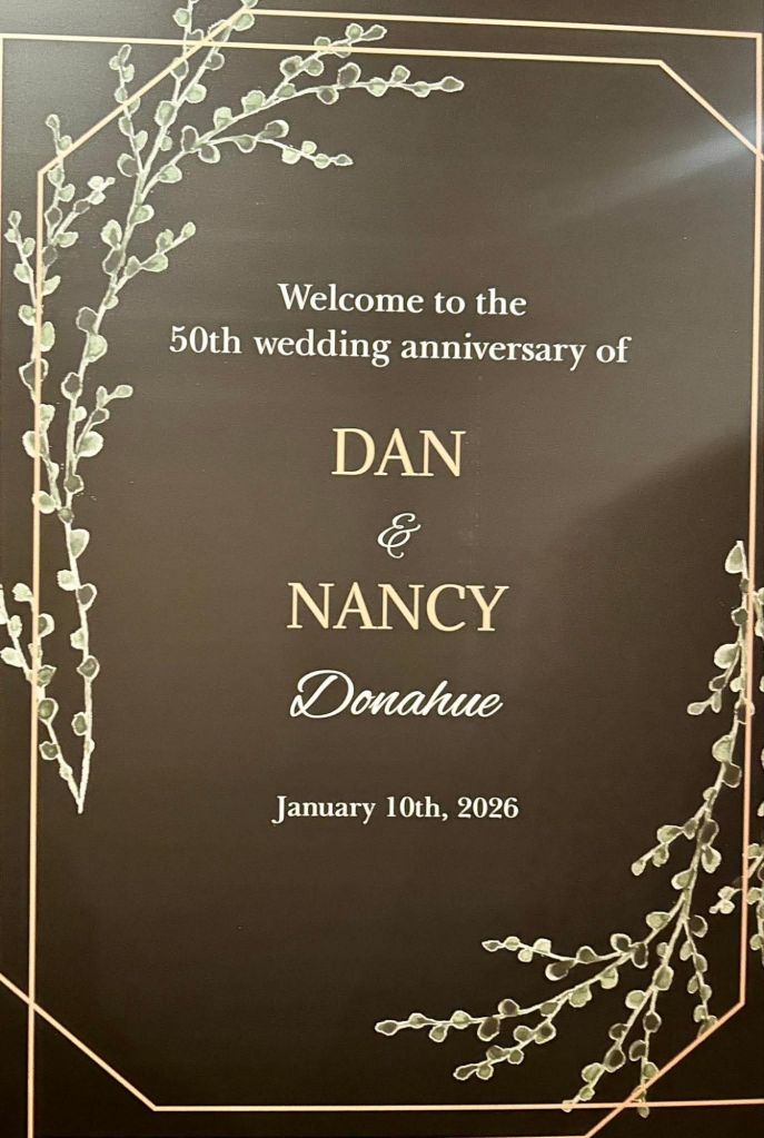 Too many to count. However, this past weekend, 1/10/26, our children and grandchildren threw us a surprise 50th Wedding Anniversary and vow renewal bash. They have been planning for the better part of the year. They sent invitations and set the dates around my niece’s 50th birthday party, hosted by my brother and his wife, making it a complete surprise. Our eldest son, Dan, in front of all our family and friends, many of whom took the time to secretly travel to be at the event.